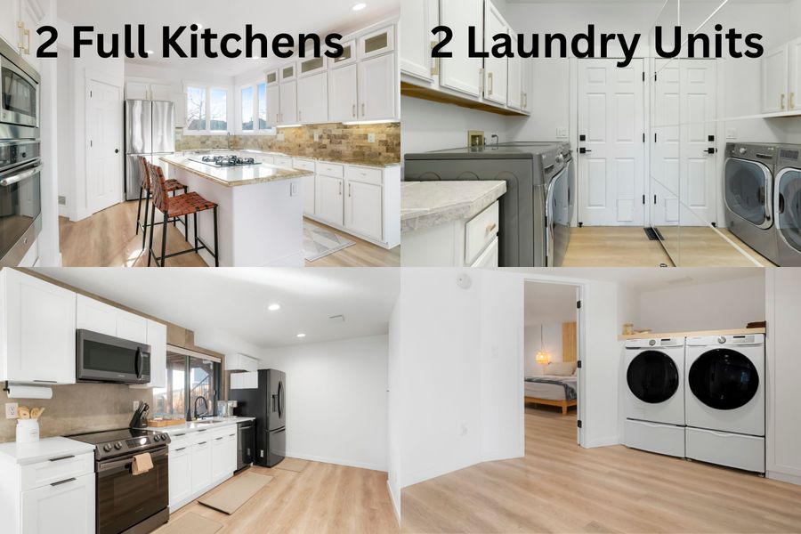 Spacious 7-bedroom, 3.5-bath single-family home with a finished walk-out basement. The basement includes a full kitchen and laundry area, offering flexible living space within the home. The main living area also features a full kitchen and separate laundry, for a total of two kitchens and two laundry areas.